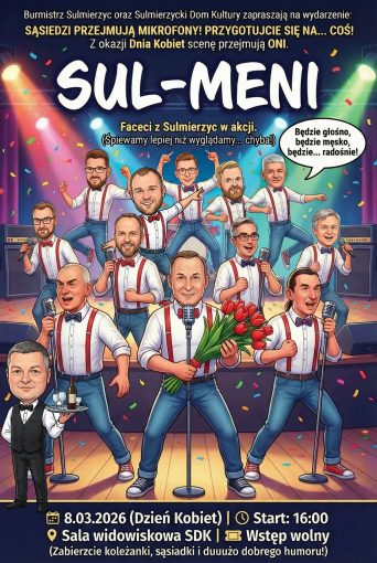 DROGIE PANIE, szykujcie się na solidną dawkę muzyki i… uroku osobistego! Nasza lokalna męska ekipa SUL-MENI przygotowuje koncert specjalnie dla Was. Będzie elegancko, wesoło i z klasą.
