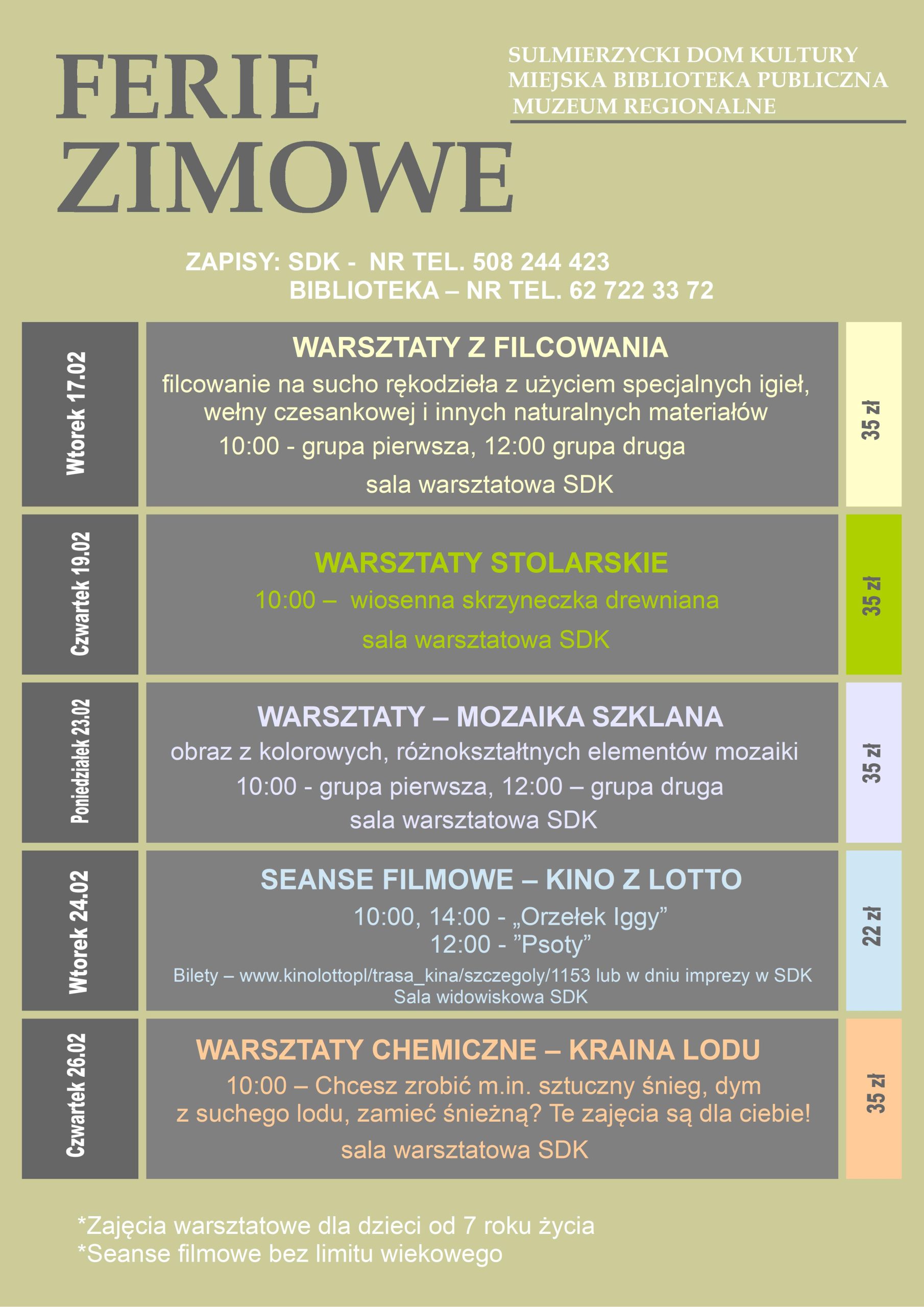 Na wydarzenia feryjne zapisujemy w pierwszej kolejności dzieci i młodzież z Sulmierzyc.
